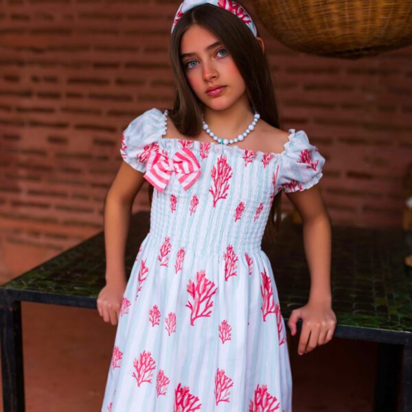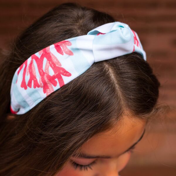 Lazo con estampado de corales a juego con la colección. Con pinza para una fácil sujeción en el pelo.